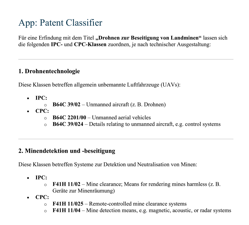 - In der Patentsuche sind Patentklassen nach wie vor eine zentrale Kategorie. In der klassischen Analyse wurden diese über Hilfssuchen oder bekannte Dokumente extrahiert. Oft zeigen sich dann während der laufenden Recherche noch weitere relevante Klassen, was zu Rückkopplungen mit zusätzlichem Aufwand führt. Zielsichere und schnelle Klassenfindung ist nun durch KI-Tools möglich.